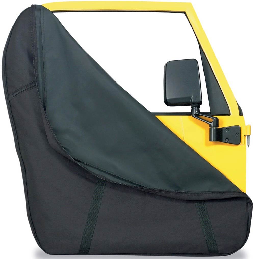 Bestop Door Storage Jackets for Full-sized Steel Doors on 2007-2018 Wrangler JK When you remove the steel doors on your Jeep Wrangler, whether for off-roading or to use the soft top, here’s a better idea than throwing them in the corner of the garage to gather dust. These full-coverage jackets (part number 51666-01) coddle your doors to protect them from dirt and scratches when they’re not in use. The jackets fits a pair of doors and are made with heavy-duty handles and zippers. Fits doors from all YJ, TJ and JK model Wranglers. Jackets are sold in a pair and fit one door per jacket, please order quantity 2 to store all 4 doors on a Jeep Wrangler Unlimited Can be slipped onto doors while they are on vehicle for easier door removal High strength materials have strategically placed carry handles