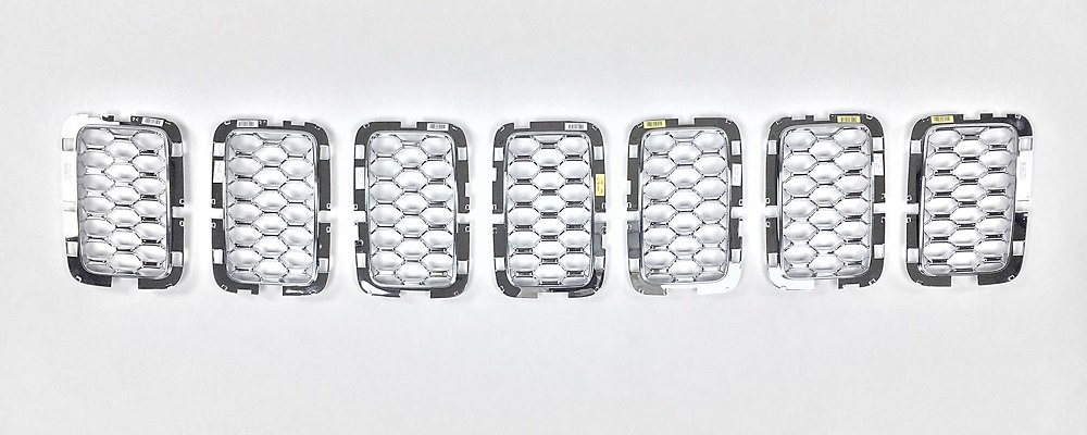 Chrome Honeycomb Grill Inserts for 2017-2021 Grand Cherokee WK2Looking to change up the look of your 2017-2021 Grand Cherokee? Look no further than the Chrome Honeycomb Grill Inserts. These stylish inserts will give your front end added bling to make your Jeep stand out in the crowd. The grill inserts can be used on all 2017-2021 Grand Cherokees except the SRT8 & Trackhawk. These grill inserts can also be used on the 2016 75th Anniversary model Grand Cherokees. Chrome Grill Inserts are sold as a set of 7. Item # 6NZ03SZ0AA