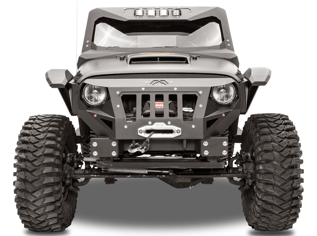 Fab Fours Grumper for 2007-2018 Wrangler JK Features: **US PAT #D775,014, D775,015** Aggressive Design Angry Eye Headlight Cutouts Winch ready for Warn Zeon 10*DOES NOT INCLUDE WINCH* Fully Customizable – 4 removable inserts for different color options Combines both Grille and Bumper Provides Greater Tire Clearance Simple and Quick Installation TECHNICAL SPECIFICATIONSMaterials: 11 Gauge Steel Finish: 2 Stage Matte Black Powder Coat w/ epoxy primer Bare Steel Size/Weight: No Guard: Length: 70″ Height: 29″ Width: 22″ Weight: 70 Lbs Application: 2007-2018 Jeep JK Wrangler