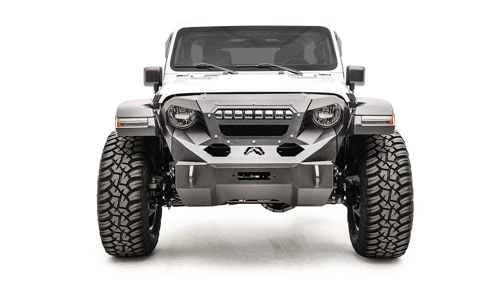 Fab Fours Grumper Lightbar Mount for 2018-2026 Wrangler JL and 2020-2026 Gladiator JTPRODUCT DETAILSFrom Concept to Reality… Building off the radical design of “The LEGEND”. The Jeep JL Gumper Lightbar Mount is an optional 20″ light bar insert for added LED light coverage on your 2nd Gen JL Stubby or Full Width Grumpers.PRODUCT DETAILSAdds LightingAccommodates most 20″ light barsWorks with 2nd Gen Stubby or Full Width GrumperTECH SPECSMaterials: 11 Gauge US SteelFinish: Fab Fours 2 Stage Black Powder CoatSize/Weight: Length: 70″ Height: 29″ Width: 22″ Weight: 75 Lbs