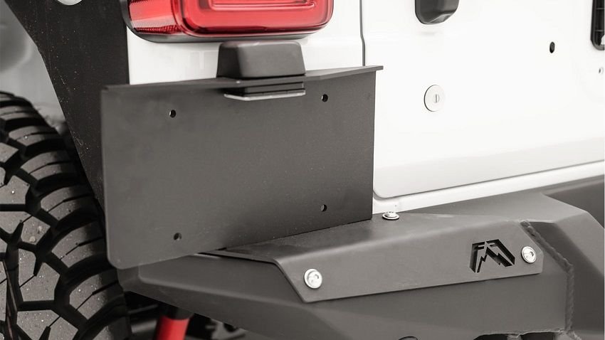 Fab Fours Rear License Plate Bracket for Vengeance Bumper on 2018-2026 Wrangler JLOVERVIEW:Optional License Plate Bracket for the Jeep JL Rear Bumper bolts onto the top corner of the base bumper. This is needed to run a license plate with the bumperPRODUCT DETAILS**To run license plate part# M4550-1 is required ** Optional License Plate Bracket bolts onto the top corner of the base bumper.TECH SPECS:Materials: 11 gauge US SteelFinish: Fab Fours 2 Stage Black Powder CoatSize/Weight: Weight: 3 lbs.Application: 2018-2019 Jeep JL