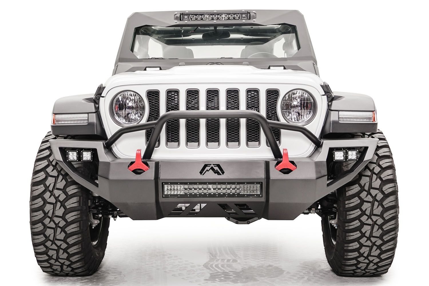 Fab Fours Vengeance Front Bumper for 2018-2026 Wrangler JL and 2020-2026 Gladiator JTOVERVIEW:Fab Fours’ new line of light weight bumpers: Vengeance Series. These premium steel sensor bumpers are engineered to be light-weight and offer a sleek and stylish finish for both the front and rear of your vehicle. Integrated 20inch LED light bar housing in the center and mounting options on each side for (2) 2-inch LEDs to give you maximum LED light coverage. The fit of this bumper is high and tight and comes with lower cutouts to provide increased airflow; while also giving you that aggressive look both on and off the road. Available in a no guard or pre-runner guard option.PRODUCT DETAILSOverall design and fit is “High and Tight” to the contours of the vehicle.Lower cutout to provide increased airflow.Provides far greater tire clearanceComplete bolt-on front bumper w/ provided brackets that tie directly to the frame.Sensor compatibleAllows for an integrated 20inch Rigid Industries LED light bar in the center (light bar not included)Mounting options on each side for (2) 2×2 Dually lights to give you maximum LED light coverage.Sensors optimized for vehicles with suspension lifts – stock height trucks may require tuning the sensor mount and will require special care.TECH SPECS:Materials: 11 gauge US SteelFinish: Fab Fours 2 Stage Black Powder CoatSize/Weight: Weight: 65 lbs.Application: 2018-2019 Jeep JL