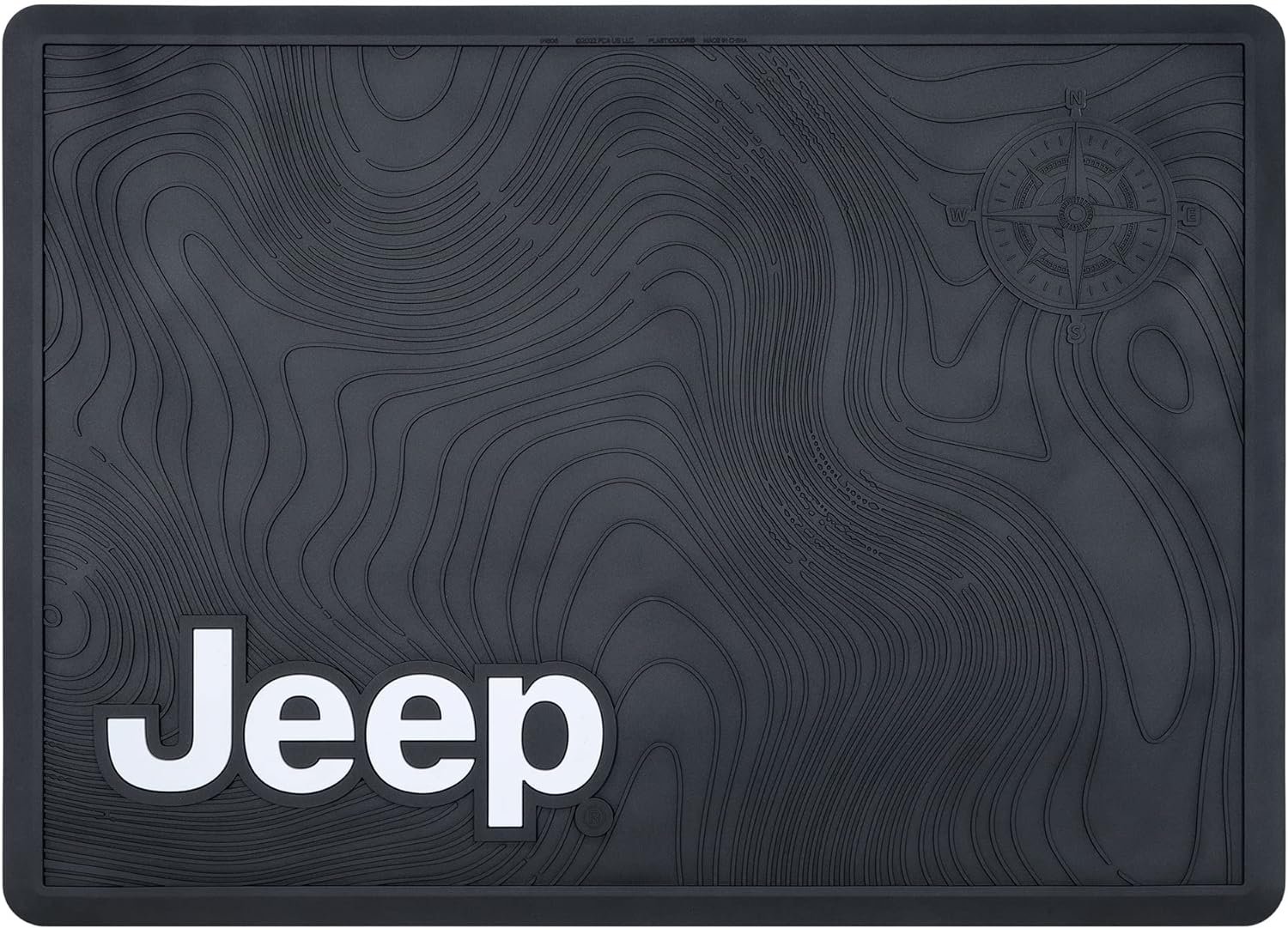 Jeep Heavy Duty Rear Cargo Mat Officially licensed Jeep product Sold individually Measures approximately 35″ W x 25″ H Protects Jeep’s rear cargo area from everyday dirt, grime, spills, and weather on a surface that’s easy to clean There are so many other uses for this stylish mat on your patio, kitchen, boat, and work area too. Constructed from high-quality flexible rubber material that conforms to any interior flooring Designed to withstand daily wear and tear Logo is molded in and resistant to fading or wearing away