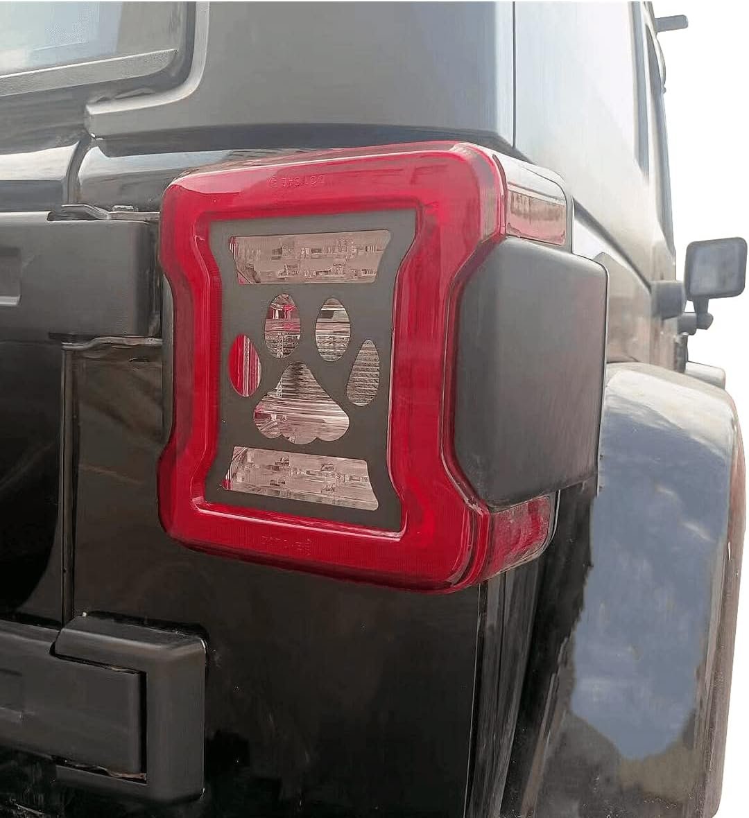 Jeep Wrangler LED Paw Print Taillight Guards for 2018-2026 Wrangler JLThe Jeep Wrangler Paw Print Taillight Guards have been carefully designed to set it apart from other rear light covers. Made from polished aluminum diamond plate in a powder coat black crinkle matte finish. This off-road accessory will not rust nor interfere with your taillights visibility.Product fits all models of the Jeep JL Wrangler with LED lights.The taillight guards come in a set of 2 and attach with double-sided adhesive. ** WILL NOT WORK WITH JL WRANGLERS EQUIPPED WITH HALOGEN TAILLIGHTS.**Item # JLPAWLED