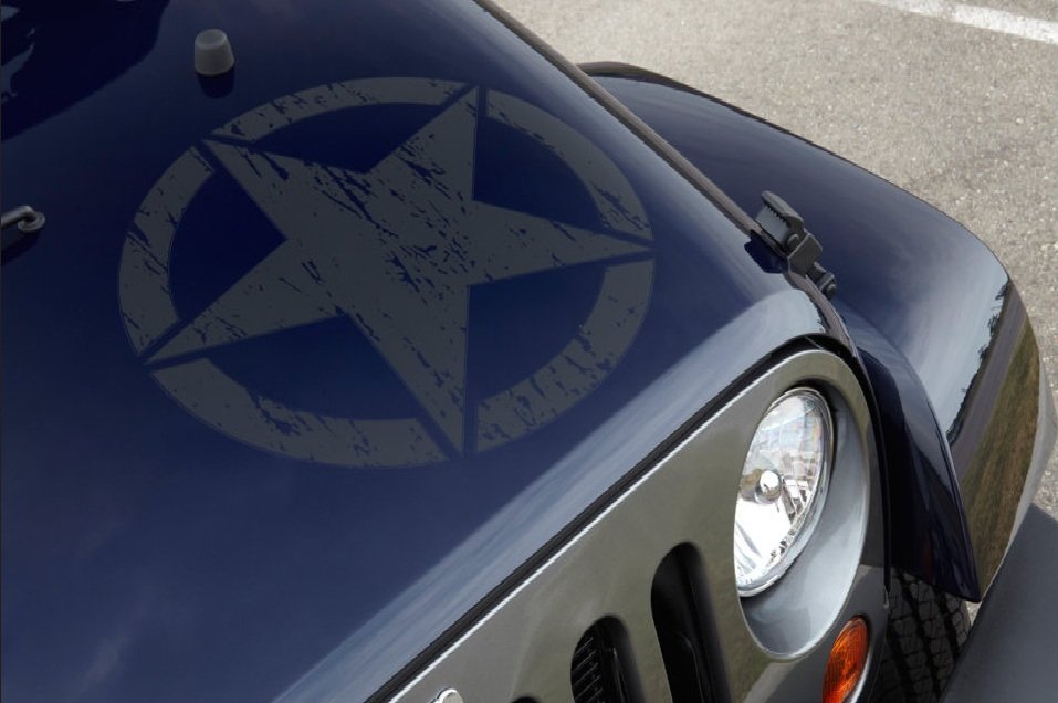 Mopar Freedom Edition “Star” Hood Decal for 2007-2018 Wrangler JK Add style to yourFreedom Edition JK Wrangler with a Jeep star decal by Mopar. This military-style decal is designed for the driver’s side of the hood, but its sticky, self-adhesive backing will affix to any flat, clean surface. This large, easy to apply decal is the perfect finishing touch to your Freedom Edition. Mopar factory Star Hood Decal found on the Freedom Edition JK Wrangler.Decal is about 20″ in diameter. Item # 68190739AA