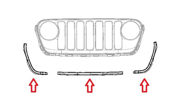 Mopar Grill Surround Moldings for the 2018-2023 Wrangler JL & 2020-2023 Gladiator JTThese three moldings and the mounting hardware are needed to complete the installation of the 82215114 (JL Wrangler) or 82216097 (JT Gladiator) Satin Black Grill on the Sport & Sport S models.The moldings either come unpainted or painted White from Mopar and will need to be painted to match your Jeep before they are installed or they can be used as is.You will need a plastic rivet gun to complete the installation of the moldings onto the grill.Painted White Version – Item # 82216413AAUnpainted Version – Item # JLJTGSM (JLJTGSM kit contains: 6CG98TZZAA, 6BY76TZZAA, 68225214AA (Qty 7) & 6503598 (Qty 2))