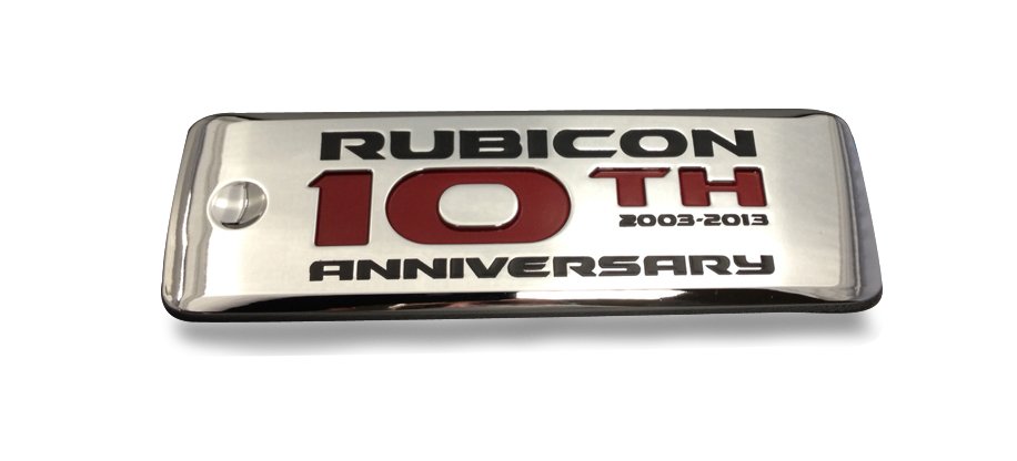 Mopar Rubicon 10th Anniversary Badge for 2007-2018 Wrangler JK This genuine Rubicon 10th Anniversary badge is the perfect way to add a little extra style to your Jeep. It’s a genuine OEM emblem that’s easy to affix to any flat surface; its adhesive backing is sturdy and reliable. This Mopar emblem measures 5.375 inches by 1.875 inches and celebrates 2013, when the JK Wrangler Rubicon hit its 10-year production mark. Badge measures 5 3/8″ x 1 7/8″Badges are sold individually.Item # 68190010AA