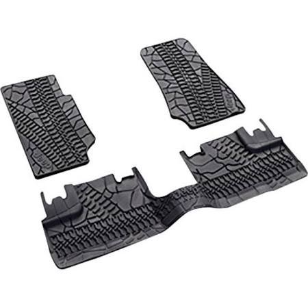 Mopar Slush Floor Mats for 2007-2018 Wrangler JKSome people love winter because of how beautiful all the snow looks. Sure, the freshly fallen snow looks gorgeous blanketed across hills, but once it mixes with mud, salt and road grime, it looks terrible – and it looks even worse inside our Jeeps. Tracking snow inside your Wrangler is dangerous for your interior, and even more dangerous for you and your passengers – if your feet are sliding around, you can’t get a good purchase on the gas or brake pedals. Solve your problem with these Jeep Wrangler all weather floor mats. These replacement floor mats feature a clever tire tread pattern that gives space for all that snow and ice to harmlessly melt off your boots, without damaging your upholstery. Because they are made by Mopar, you’ll have the confidence of a perfect, snug fit, even with your 2007-2018 Wrangler’s oddly-shaped footspaces. You’ll also be able to remove them easily for cleaning when spring comes – and that’s when you’ll find out these slush mats easily handle mud, as well. You’ll get year-round use out of these slush mats, and when you order from Just for Jeeps, you’ll enjoy deep discounts and great deals on shipping.2-Door Front Slush Mats only or 4-Door Front & Rear Slush Mats, Slate Gray, Unique Pattern with Jeep Logo.2 Door Mats do not come with a mat for the rear seat.Please select model above.2007-2013 2-Door – Item # 82210164AC (Front Mats Only. Click here for the Rugged Ridge rear mats.)2007-2013 4-Door – Item # 82210166AD (Main Photo)2014-2018 2-Door – Item # 82213861 (Front Mats Only. Click here for the Rugged Ridge rear mats.) 2014-2018 4-Door – Item # 82213860 Protect your Jeep’s interior from filthy snow and ice with these heavy-duty slush mats, made by OEM Mopar for a perfect fit.