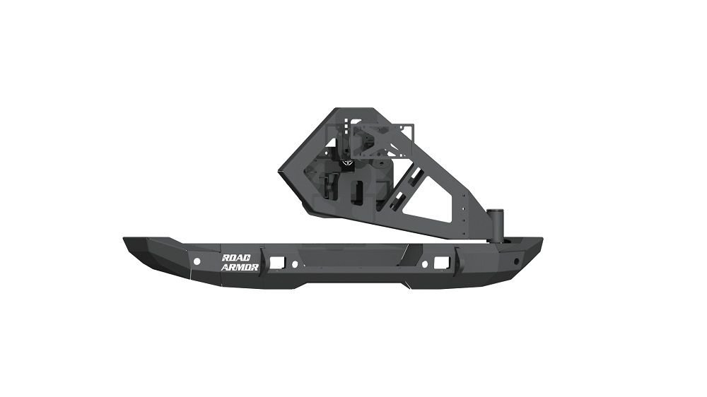 Road Armor Stealth Rear Bumper Full Width with Tire Carrier Assembly in Texture Black for 2018-2026 Wrangler JLRoad Armor is the world’s premier bumper manufacturer, dedicated to producing the ultimate in form, fit, and finish. We were the first to create a multifaceted steel bumper design and have led the industry since 2000. There are a lot of other manufacturers on the market these days, and we encourage you to learn the difference – The Road Armor difference – because not all replacement bumpers are created equal. There’s no substitute for the Original Road Armor Bumpers, 100% Made in Texas, USA and backed by our Lifetime Guarantee. Road Armor Stealth Full Replacement Winch Bumpers are rugged, and loaded with added utility. The Original Faceted Stealth Series Steel Bumper in Raw Unfinished Steel was the pioneer of the aftermarket bumper segment. Specifically designed to follow, compliment, and accentuate the body lines of your vehicle, this masterpiece of metal houses a WARN M12000, Smittybilt XRC winch or similar and has recessed light ports for *.Product Features:Proudly Made in Texas, USA3/16 inch Heavy Duty Steel Construction1/4 inch Gusseting and Internal BracketryCNC Laser CutPrecision Brake FormedWelded by Craftsmen inside and outDirect Bolt On DesignSuperior Foot Forward Winch MountSuperior Foot Forward Winch Mount fits a WARN M12000, Smittybilt XRCRecessed light ports for auxiliary lightingRaw Unfinished SteelLifetime Structural Warranty*Winch and Lights are not included