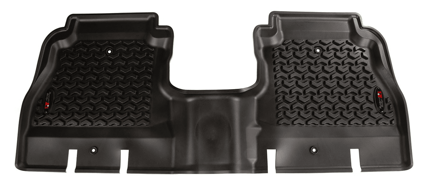 Rugged Ridge Rear Floor Liners for 2018-2026 Wrangler 4Dr JLRugged Ridge Floor liners provide complete protection for the cabin floor of your vehicle while keeping it looking factory fresh. Each liner is injection molded to keep it’s shape in all temperatures and is perfectly contoured to your vehicle’s floor for precise secure fitment (floor hook attachment where applicable). The raised lip captures all spills, water and debris keeping your interior pristine. The Chevron-shape patented Deep Tread Technology channels liquid away from your shoes keeping them dry. Made of a durable OE-quality thermoplastic material that can withstand the rigor of daily abuse. Backed by our Limited Lifetime Warranty.