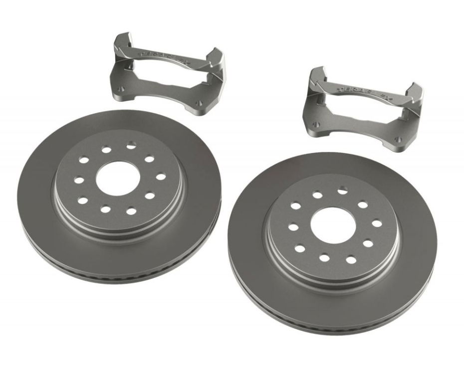 Teraflex Wrangler Big Rotor Kit for 2007-2018 Wrangler JKThe TeraFlex JK Performance Big Rotor Kit is the perfect upgrade for JK Wrangler owners requiring increased braking performance for 33-35 inch tires. This kit allows the factory brake caliper and brake pads to be retained, while increasing the rotor diameter from 11.9 inches to 13.3 inches.The increased clamping distance from the rotor center results in greater braking leverage to allow stopping distance to be decreased substantially (larger rotor diameter = greater stopping power). The simple bolt-on installation upgrade requires absolutely no brake line modification or brake bleeding, and can be installed with basic hand tools. Set of 2 for front wheels only.Product Features & Benefits:Brake caliper relocating anchor bracketMill-balanced vented rotors for maximum heat dissipationImproved braking performance over factory brake systemRetain factory brake caliper & padsNo brake bleeding or brake line modification required100% bolt-on upgrade for easy installationA minimum of a 17 inch wheel must be used with this kitFront Rotors – 4303480Rear Rotors – 4304450Slotted Front Rotors – 4303490Slotted Rear Rotors – 4304460