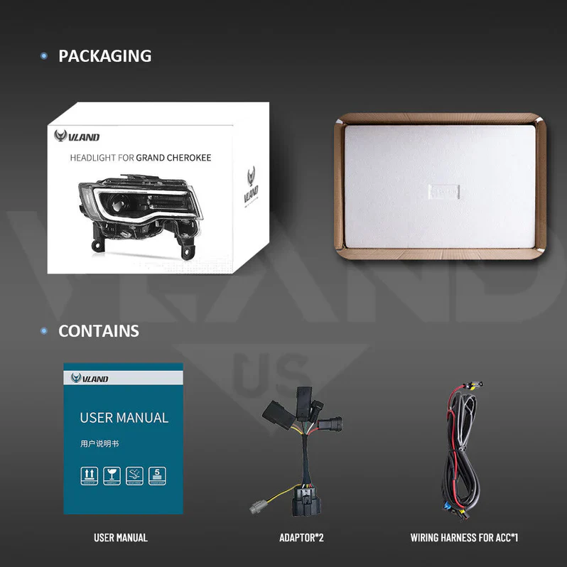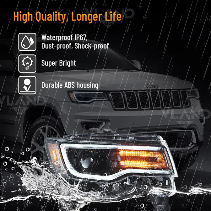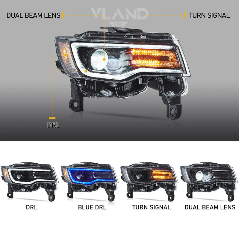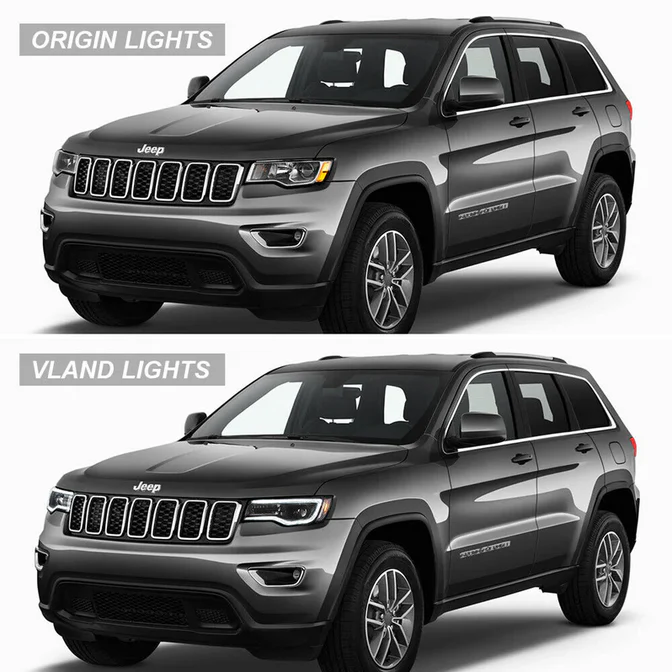 Transform your 2014–2022 Jeep Grand Cherokee with these high-performance VLAND LED Projector Headlights. Featuring a mesmerizing “Demon Eye” blue startup sequence and a sharp, ice-white LED halo DRL, these lights provide an instant custom look that sets you apart from the crowd. Engineered with powerful projector lenses for maximum nighttime clarity and dynamic sequential turn signals for added safety, this plug-and-play upgrade is the perfect fusion of aggressive styling and cutting-edge technology. Turn heads every time you unlock your Jeep!